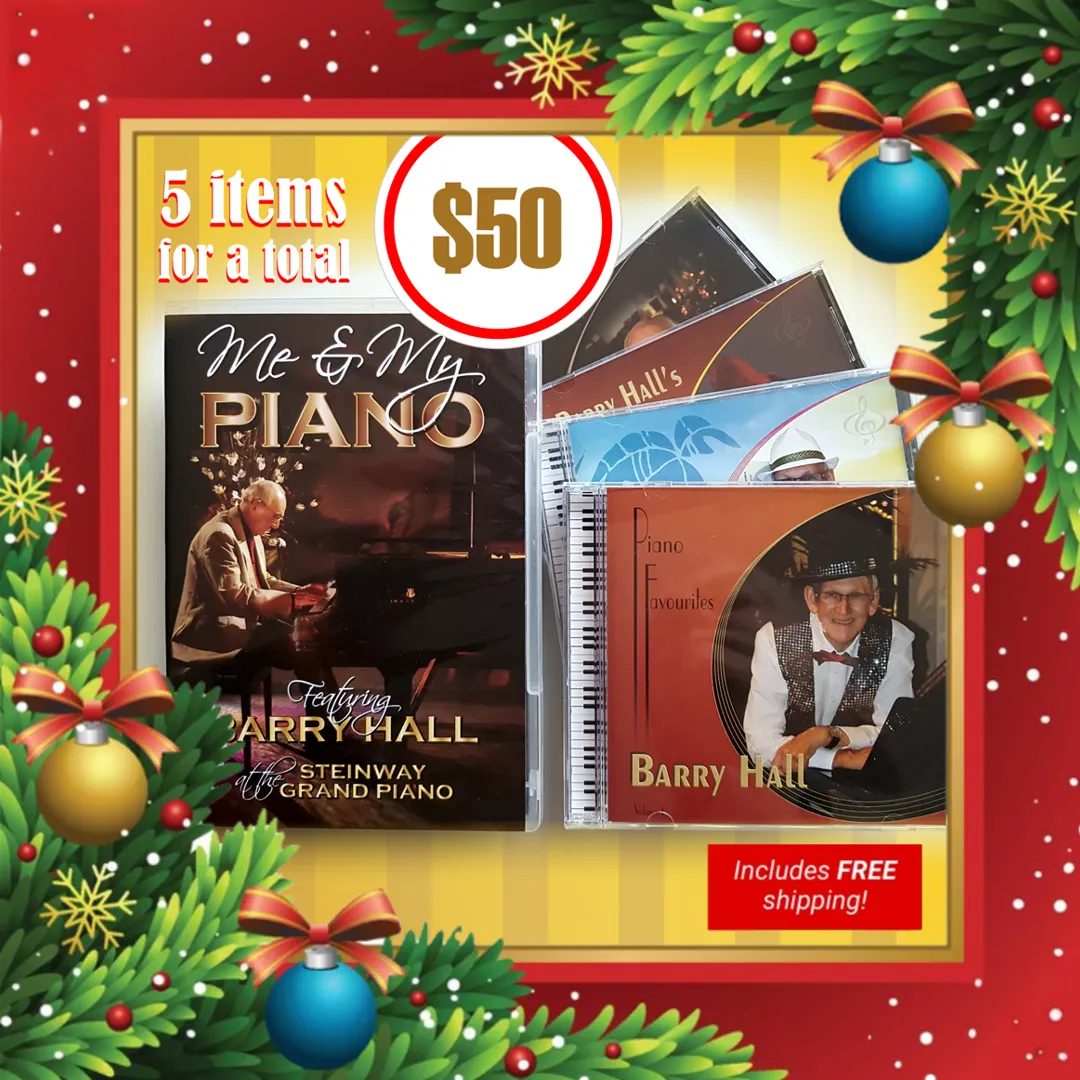 Enjoy Barry Hall’s brilliance with his Me & My Piano DVD and 4-CD Mini Library of piano and keyboard performances.